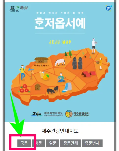 위의 바로가기 버튼을 클릭하면 제주 관광지도 다운할 수 있는 페이지로 바로 이동합니다. '국문'을 클릭하면 다운로드 페이지가 열립니다.