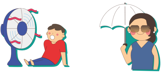 - 환기: 냉방이 되지 않는 실내에서는 햇볕이 실내에 들어오지 않도록 하고, 환기가 잘 되도록 선풍기를 켜고 창문이나 출입문을 열어둡니다.