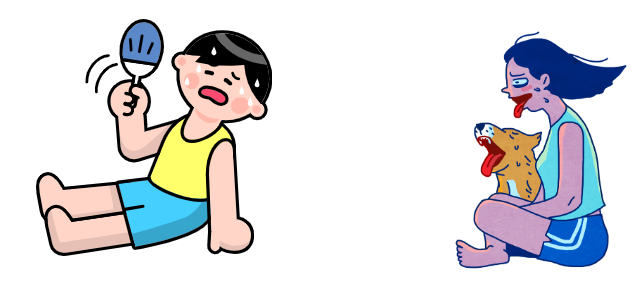 - 환기: 냉방이 되지 않는 실내에서는 햇볕이 실내에 들어오지 않도록 하고, 환기가 잘 되도록 선풍기를 켜고 창문이나 출입문을 열어둡니다.
